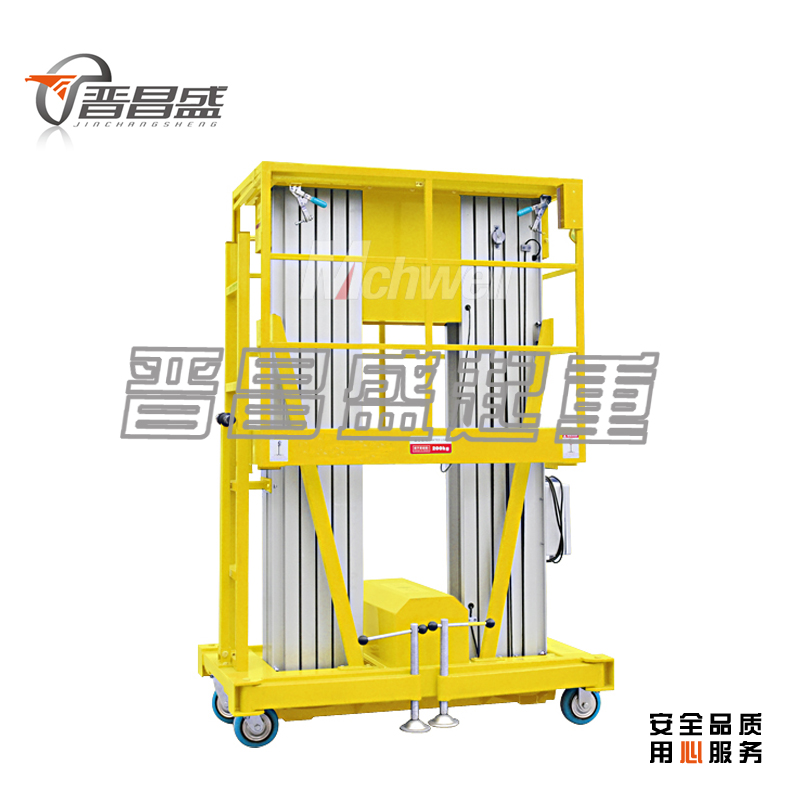 兩組桅柱支撐作業(yè)平臺同步升降,具有優(yōu)秀的工作穩(wěn)定性;整體升降式護(hù)欄裝置,強(qiáng)度好