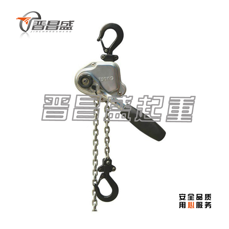 主體采用高強度鎂鋁合金材料,鏈條采用高強度特制合金鋼材料。使用方便、安全可靠;結構合理、造型美觀;維修簡單、經久耐用;手扳力小、工作效率高;體積特小、重量特輕、攜帶方便。