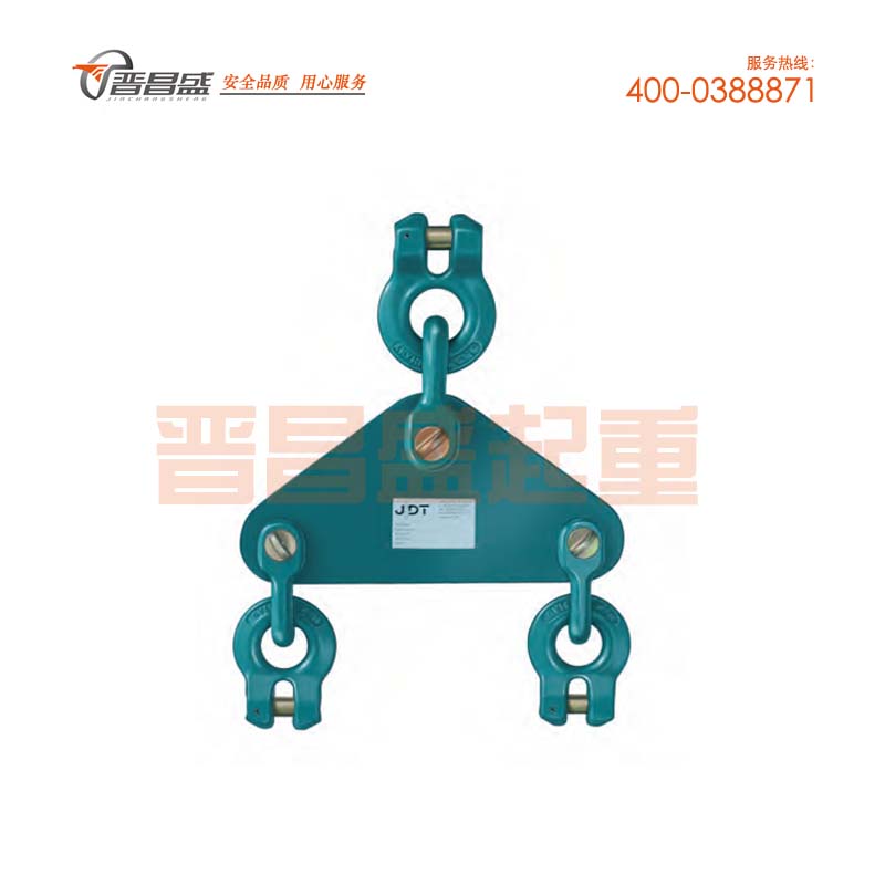 下面提到的額定載荷是對使用雙肢鏈有效的,必須是對稱的分布。雙肢鏈條一端安裝到吊板,另一端安裝吊鉤。